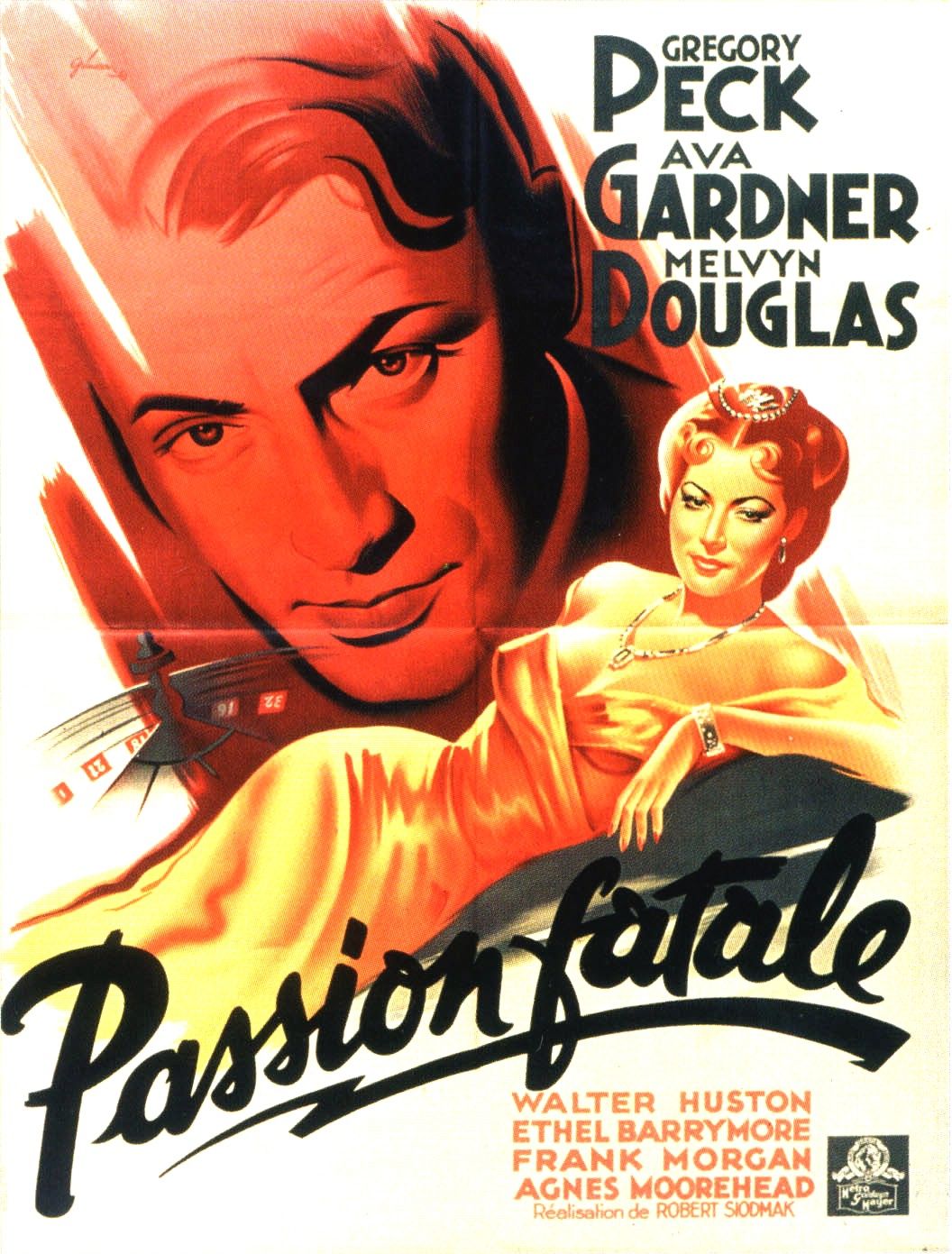 Film assez intéressant sur la passion du jeu qui fait froid dans le dos. Les acteurs sont bons, on voit vraiment l'acteur sombrer dans la folie petit à petit ! Prenez trois cartes, elles vous prédisent, Amour, Argent et Danger. Un cocktail explosif pour mener à bien une intrigue autour du jeu, des joueurs et de leurs déboires. Grégory Peck nous offre une interprétation solide, séducteur et protecteur, avant de tomber entre les mains du diable. Melvin Douglas, calculateur, prédateur au sang froid qui ne lui permettent pas d’échouer. Et enfin Ava Gardner, où peu à peu son charme prend de l’ampleur, elle devient femme, comme le lui dit son prétendant, et elle met en scène sa beauté avec panache. Seul bémol, la bande son qui parfois est très pesante, comme s’il était besoin de marqué le trait pour renforcer le drame, on est sortit du cinéma muet, mais quelques fantômes traînent de ce côté. Beau drame d’epoque. Une femme peut-elle être trop belle au point de faire perdre de la qualité à un film ? Ici, la réponse est oui sans le moindre doute. Sur des sujets aussi brulants que la passion amoureuse et la passion du jeu, mettre autant d’artifices sur l’une et autant de froide beauté sur l’autre rendaient le résultat final plus qu’incertain. Il aurait fallu plus de folie pour nous faire entrer dans ce qu’il faut bien appeler un drame. La seconde partie est moins bonne que la première , faute à Gregory Peck qui ne joue pas bien l’addiction au jeux et au casino, les deux étant indissociables mais différentes. ''Passion fatale'' est certes un beau film mais il est bien trop intellectuel d’autant que ses réflexions énoncées par les dialogues sur la condition humaine ne sont que de fausses apparences, elles se veulent intelligentes, elles ne sont que sophistiquées. La réunion entre Hollywood et Fedor Dostoïevski donne une production de prestige style MGM, photographie, décors et costumes impeccables, qui est loin d'être inintéressante. Au contraire, Robert Siodmak arrive à bien mener le tout qui se révèle même parfois prenant. Mais surtout il dirige très bien son casting, à l'exception de Melvyn Douglas qui apparaît bizarrement fade. Gregory Peck arrive très bien à rendre la descente progressive vers la folie de son personnage, Ava Gardner magnifique arrive à mettre beaucoup de nuance dans le sien, Walter Huston, Ethel Barrymore, Frank Morgan et Agnes Moorehead composent de façon intéressante des personnages qui ne le sont pas moins. Peut-être pas un grand film, mais une oeuvre qui est digne d'intérêt.