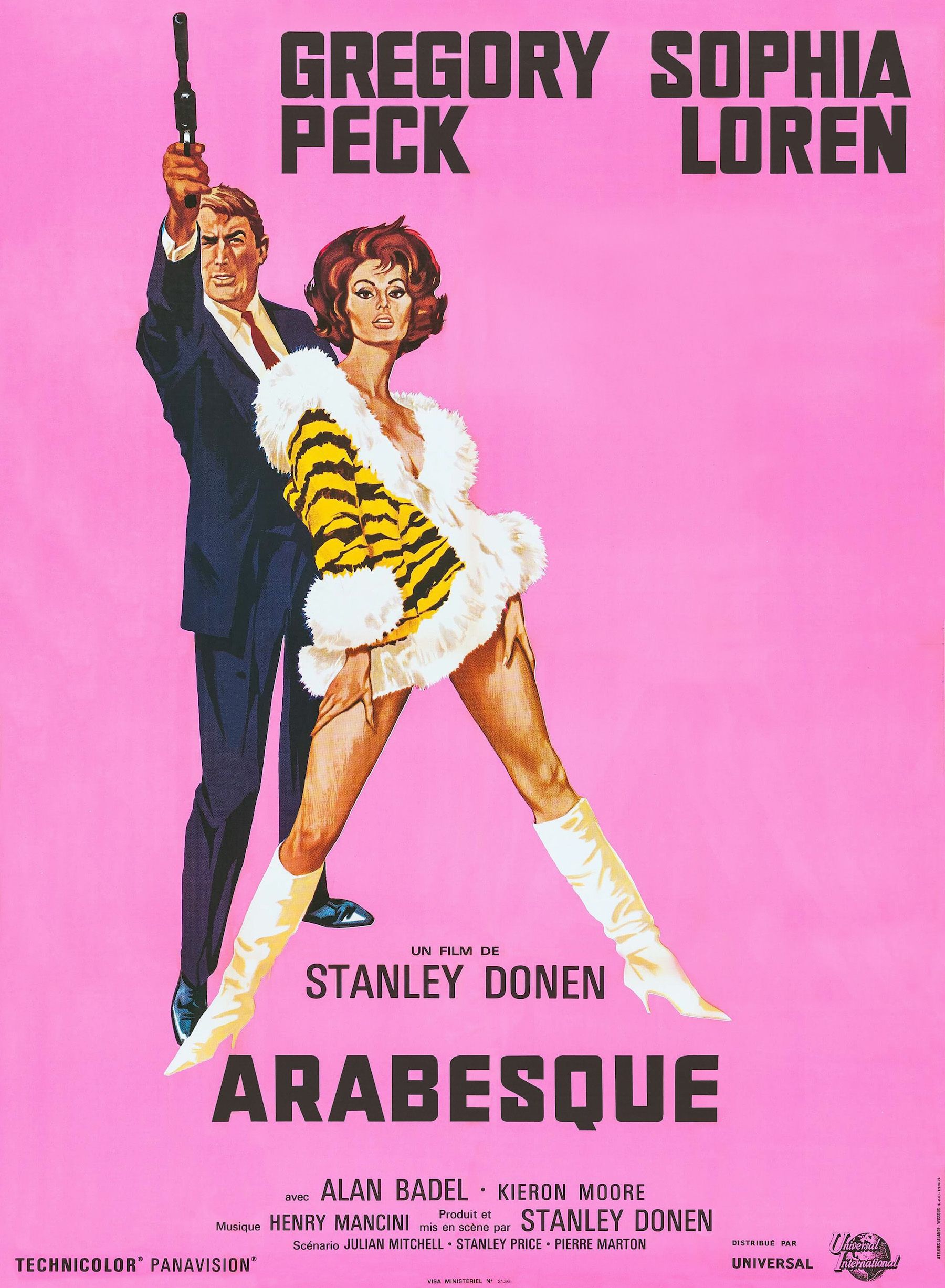 Sympathique film d'espionnage, dans la veine des Hitchcock de l'époque avec moins de tension mais plus d'humour. Le couple Peck/Loren est parfait, scénario qu'on suit avec plaisir. La réalisation est très bien (avec beaucoup de jeux de miroirs, vitres, ...). Une surprise que la qualité du ce film. Arabesque est un bon film de Stanley Donen. La mise en scène du réalisateur est irréprochable, le scénario est intéressant et travaillé, le film est divertissant, les acteurs comme Gregory Peck, Sophia Loren ou encore Alan Badel sont convaincants dans leurs rôles etc… Bref, c’est à découvrir. Un thriller/comédie réussi de Stanley Donen à l'instar de Charade. On a ici (comme dans Charade) tout un jeu sur les identités des personnages, on ne sait jamais qui est qui, qui travaille pour qui et qui dit la vérité. Le duo Peck/Loren apporte la légèreté au film ainsi que l'humour, mention spéciale à Gregory Peck qui joue très bien l'ironie de son personnage. Un peu en dessous de Charade, mais on passe un très bon moment. Sur le même canevas que son précédent film «Charade» le réalisateur Stanley Donen a encore réalisé une agréable comédie d'espionnage. Moins illustre que son ainé à cause d'une intrigue plus embrouillée, «Arabesque» n'en demeure pas moins bourré de charme et de piquant et recèle de nombreuses qualités. Le réalisateur sait imposer une ambiance dès la première scène ainsi qu'un tempo impeccable, faisant bien reconnaître l'ancien metteur en scène de comédie musicale, en usant avec brio de la technique et en choisissant avec un soin scrupuleux chaque cadrage. Inutile de dire que Gregory Peck et Sophia Loren forment un duo très glamour. La vision de ce film se déguste comme une coupe de champagne.