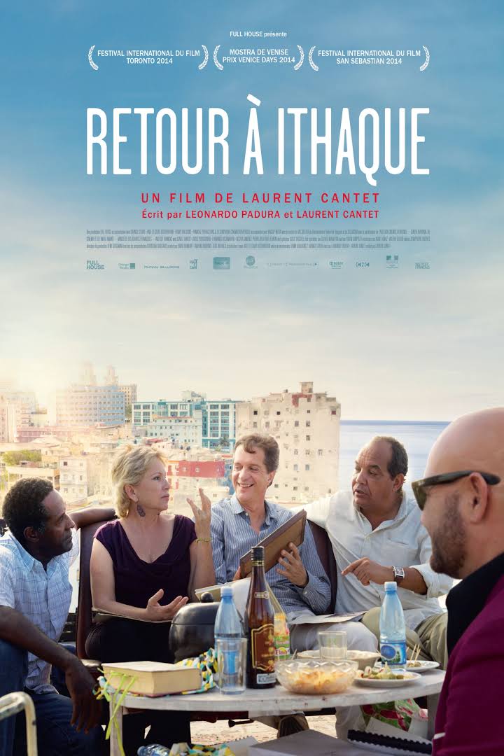 Laurent Cantet n’a pas choisi le chemin le plus simple pour se rendre à La Havane et tenter de dresser un panorama politique et social d’un pays qui s’ouvre un peu plus chaque jour au monde nouveau. Il choisit les mots de l’écrivain du pays Leonardo Padura avec qui il signe le scénario pour mettre en scène cinq vieux copains de toujours qui à l’occasion du retour de l’un d’entre eux d’Espagne se réunissent autour d’une bonne table et de bonnes bouteilles. Ce sont leurs conversations que le réalisateur enregistre avec une clairvoyance parfaite pour ne jamais lasser le spectateur qui va de l’un à l’autre en découvrant ce que fut le pays et les perspectives qui se dressent aujourd’hui devant lui. Ce nouveau film de Laurent Cantet, sorti dans l'anonymat le plus total, risque du coup de rester peu de temps à l'affiche et d'attirer peu de monde. C'est bien dommage car voilà un très beau film. Après son dernier opus tout en anglais, le réalisateur de Entre les murs, revient à l'espagnol et à Cuba avec son co-scénariste de sa section de 7 jours à la Havane. Il dresse un état des lieux du pays, passé et actuel, où il n'épargne personne. Bizarrement, il a eu toutes les autorisations pour tourner son film sur place. Outre le portrait politique et économique de l'île, on est là devant l’histoire très émouvante, passée et présente, d'un groupe d'amis aux destinées très différentes. Après quelques minutes de mise en place où l'on apprend à connaître les personnages, on s'attache très vite à eux pour les suivre avec intérêt. Laurent Cantet a écrit le scénario avec le célèbre écrivain cubain Leonardo Padura. Unité de lieu : une terrasse de La Havane. Avec un côté mer et un côté cour. Partir ou rester ? Unité de temps : une soirée et une nuit. Unité d'action : une longue conversation entre 5 amis, l'un d'entre eux de retour après 16 ans passés en Espagne. Pas de voitures américaines, pas de slogans sur les murs, pas de carte postale ... Retour à Ithaque n'est pas un film touristique mais une discussion à bâtons rompus d'un quintet qui a crû en des lendemains meilleurs et qui survit tant bien que mal. Les années ont filé, les illusions aussi. Le film s'impose par son texte, le huis-clos théâtral n'est en aucun moment une gêne. C'est passionnant et prenant, émouvant même, avec ses révélations finales. L'authenticité est d'autant plus grande que les acteurs cubains transpirent la sincérité. Grand film.