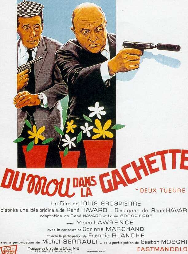 Du mou dans la gâchette est une comédie policière divertissante mais qui n’a rien d’un chef-d’œuvre. Derrière la caméra on retrouve un Louis Grospierre irréprochable dans sa mise en scène, le scénario est correct même si il reste assez plat, le film est divertissant, il y a un bon humour même si c’est loin d’être l’une des meilleures comédies, les acteurs sont convaincants on retrouve notamment Michel Serrault, Bernard Blier et Jean Lefebvre… Bonne petite comédie policière sans grande prétention qui repose essentiellement sur le duo comique blier/lefbvre avec quelques gags plutot drole.... Un peu mollasson le rythme du film, mais comme d'hab Blier fait le taf ce qui sauve un peu le film. La réalisation peut faire penser à un film des années '50 et pourtant, nous somme en 1967 ! J'ai faillit ne pas prolonger au delà d'une demi heure mais finalement, le métrage prend ses marques et on finit par s'amuser du sort de ses énergumènes. L'une des rares réalisation de L. Grospierre (on comprend) ; J. Lefebvre et B. Blier, deux truands du dimanche, s'en sortent grâce à un peu de chance mais leur maladresse les pousse à se questionner sur leur avenir de malfrats. Quelques situations cocasses et un casting sympa. Pour ceux qui aiment les histoires de Pieds Nickelés particulièrement nuls et maladroits, vous aller être servis (Blier, Lefebvre) . La musique est très bien, ce n'est pas mal filmé, loin d'être un chef-d'oeuvre, ça se laisse regarder pour la qualité d'acteurs des deux compères. Une petite comédie policière sans grande prétention... Les gags sont un peu gros et usés mais on suit tout de même avec un certain plaisir ces deux tueurs ratés. Blier et Lefebvre sont dans le ton et on notera avec joie l'apparition de Michel Serrault qui nous livre cinq minutes de bonheur ! Et même si on reste très loin de la qualité des Tontons flingueurs et autres Barbouzes, le film se regarde sans efforts.