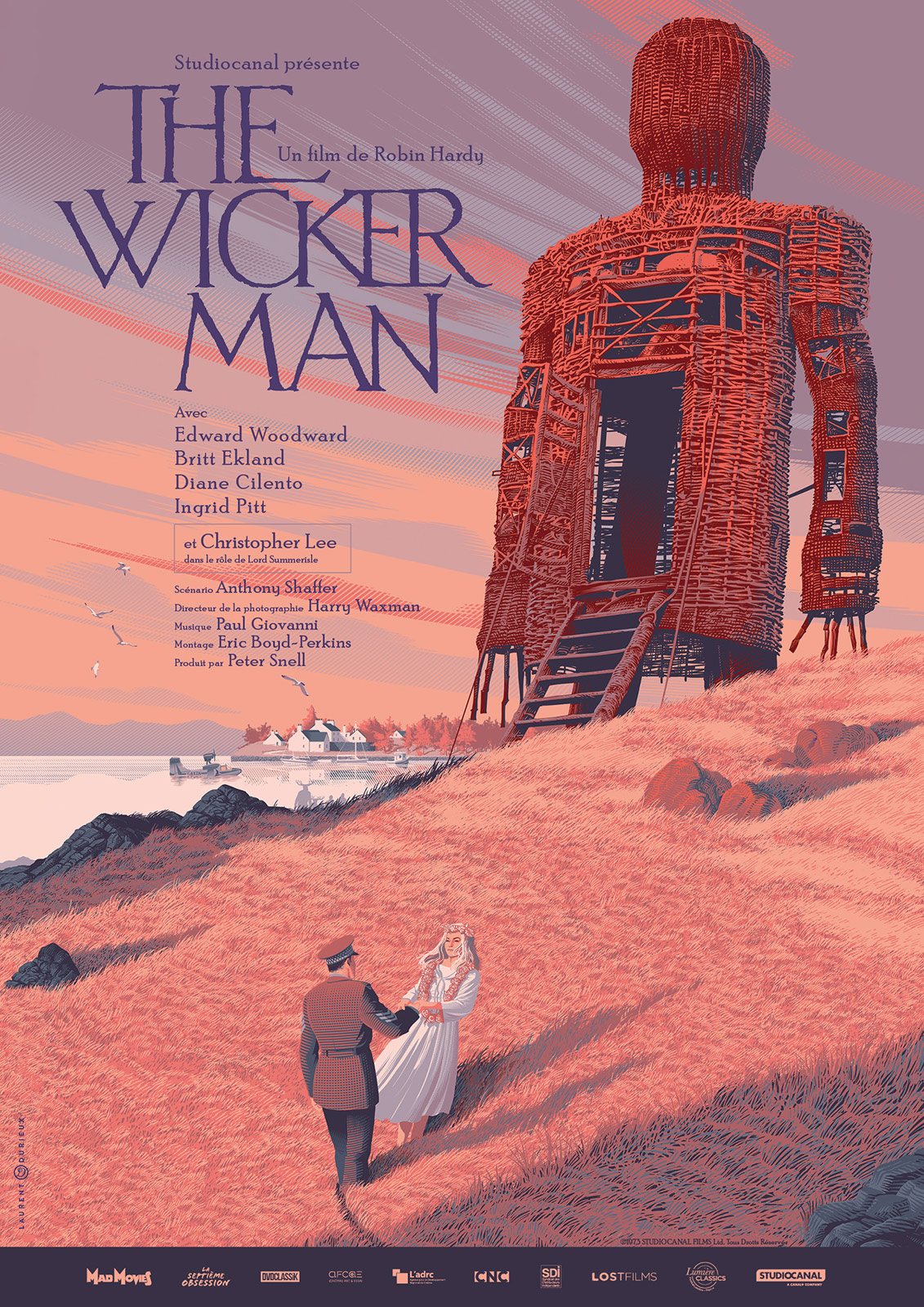 Film à la pensée post Hippy des plus sympathique profondement contestataire et transgressif qui fustige toutes les religions, The wicker man est un savoureux brassages des genres passant du film policier à la comedie musicale. Edward Woodward ( The equalizer ) est parfait en flic bigot vraiment coincé alors que Christopher Lee s'amuse beaucoup en châtelain païen ebouriffé. Le film a connu une distribution en salle chaotique ce qui n'a fait que renforcé sa légende à l'image de son final immora C'est une évidence, "The wicker man" est un film très étrange. A mi-chemin entre le thriller inquiétant et la comédie musicale, l'intrigue, sordide histoire à propos d'une enquête dans des milieux de religion exotique, se développe de manière très déroutante, puisque la mise en scène donne un aspect quasi documentaire au film, avec notamment tous ces magnifiques paysages, cette vision de l'Angleterre profonde... Mais finalement, au bout d'une demie heure, une fois mis dans le bain, on se délecte de cette ambiance très glauque. Il faut dire que le personnage de Christopher Lee, encore excellent, est plutôt bien retranscrit, et celui de Edward Woodward d'une profondeur inattendue. Et la fin, malgré son côté prévisible, est tout de même plutôt efficace. Mais ce qui fait en grande partie le charme de ce "Wicker man", c'est sa réflexion sur les conflits de religions, ainsi que la primitivité de certaines d'entre elles (peut-être la notre, à bien y réfléchir), plus aboutie qu'il n'y parait. Une bonne surprise. Un OFNI inclassable qui serait du domaine de l'épouvante mais flirterait avec le policier et la comédie musicale, et où l'érotisme (impossible d'oublier la danse très sexy de Britt Ekland et de sa doublure dans l'hôtel!) côtoie le sordide le tout dans des paysages magnifiques. On peut voir venir la fin depuis longtemps cela n'empêche pas cette dernière de très fortement marquer par sa froideur et sa cruauté. Difficile de dire si l'ensemble très ambigu et au climat angoissant très bien entretenu est une condamnation de l'intolérance chrétienne ou de l'atrocité des rites païens, certainement les deux, mais cela pousse de façon remarquable à la réflexion. Christopher Lee est excellent en maître de l'île d'un abord sympathique mais inquiétant, et il ne faudrait pas oublier de mentionner Edward Woodward, parfait dans le rôle d'un policier bigot et frustré. De ce qui aurait pu n'être qu'un film d'épouvante sans envergure, Robin Hardy en a fait une oeuvre unique profonde et intelligente.