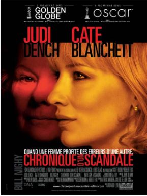 Chronique d'un scandale procure d'abord le plaisir un peu coupable que fait naître le spectacle d'une catastrophe. Une histoire réaliste et jamais caricaturale. Ce long métrage parle en creux de la solitude, de l'amour enfoui et de la jalousie, avec une étonnante justesse de ton. La mise en scène élégante et la musique de Philip Glass mettent en valeur la tension psychologique du film, où seule une trop grande solitude plaide coupable. Il n'y a pas un plan où l'on ne ressente pas la concentration, la précision et l'émotion transmises par les deux comédiennes. Grâce à Judi Dench, ce scandale, somme toute assez puritain, mérite le tapage. Faute d'ébats classés X, ses piques acerbes fournissent la dose de vices promise. Suspense psychologique, Chronique d'un scandale laisse à ses spectateurs une confortable longueur d'avance sur ses deux héroïnes. Mais quand la vérité éclate pour de bon, c'est le trou d'air, et une impression de redondance plombe les vingt dernières minutes, en forme d'impasse dramaturgique. Histoire classique de vampirisme social. Ce qui gêne le plus, c'est l'insistance de la mise en scène, qui ne laisse pas une once de liberté à l'imagination. Entre la virtuosité datée de Judi Dench et celle mielleuse de Cate Blachett, l'agacement est à son comble.