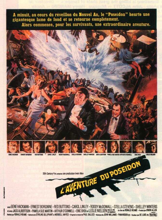 Fleuron du film catastrophe, "L'Aventure du Poséidon" s'avère captivant, et particulièrement prenant. Bénéficiant d'un scénario très bien construit, d'une mise en scène soignée, d'une belle musique et de bonnes interprétations, ce film est un pur délice. Même s'il subit quelques longueurs et quelques incongruités, il reste un divertissement de qualité. Contrairement à l'autre horreur qui lui sert de remake ("Poséidon" version 2006), ce film est très crédible ; et prouve soit dit en passant qu'une catastrophe bien expliquée, un peu de fond et des personnages bien creusés sont beaucoup plus efficaces que de vulgaires effets spéciaux qui font office de tout dans un pseudo-remake ! Car ce film a très bien vieilli. Bref, on a droit à un des tout premiers blockbusters, à un film culte, à un divertissement rondement mené, à un joli casting... Sympa. " L'aventure du Poseidon " est un bon film catastrophe devenu une référence et dont le succès a ouvert la voie a bon nombre de film catastrophe dans les années 70 comme " la tour infernal " . L'histoire est prenante et captivante ou l'on suit la lutte pour la survie de plusieurs personnages qui tente de sortir d'un paquebot en train de sombrer ce qui va donner lieu à sont lot d'action , de suspense , de tension , d'angoisse et de rebondissement très présent tout le long du film . On est vraiment tenu en haleine du début à la fin . Le casting est très bon avec à sa tête gene hackmann excellent dans le rôle d'un révérend qui va prendre son courage a deux mains pour tenter d'aider un groupe de personne a sortir du paquebot . Face a lui Ernest Borgnine excellent également dans le rôle d'un vieux flic râleur. Les décors du paquebot retourner sont très réussit et nous immerge totalement dans l'ambiance catastrophique du film . Sans oublier la musique qui colle merveilleusement bien a l'ambiance . " L'aventure du Poseidon " un classique du film catastrophe à ne pas louper. Probablement l'un des meilleurs films-catastrophes de tous les temps. La confrontation entre Gene Hackman et Ernest Borgnine est un grand moment de cinéma. La tension est permanente. Palpitant. Les effets spéciaux sont super bien faits et l'on reste baba devant tant de prouesses techniques pour l'époque. La réalisation, tonitruante, parachève le tout pour former un chef d'oeuvre intemporel qui restera gravé dans les annales du septième art. CULTE !!! A VOIR ABSOLUMENT une fois dans sa vie ! "L'aventure du Poséidon" reste sans conteste l'un des meilleurs films de genre catastrophe, très prisé à l'époque, mais toujours d'actualité aujourd'hui. Franchement, avec "La tour infernale", c'est le must du must. Cinéphiles, ne le manquez surtout pas !