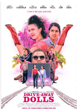 Film d'Ethan Cohen, après la fin très probablement définitive du duo qu'il formait avec son frère. Sa femme est au scénario. Ralliée depuis longtemps à la cause féministe, le film donne avoir un engagement un peu anachronique, une approche un peu datée mais sincère. La mise en scène est réussie et se détache un peu des précédents. Surtout un humour loufoque décomplexé et pleinement investi par une Margaret Qualley excellente. Pour le fond, c'est un peu maigre et ça sent le recyclé (certains aspects déjà vu dans d'autres films des frères Cohen comme Blood Simple ou The Big Lebowski). Si Joel Cohen manque et que Drive-Away Dolls offre une histoire un peu dépassée, son humour et sa mise en scène décomplexés font du bien dans un cinéma hollywoodien majoritairement fade.