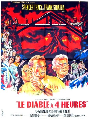 Le défi principal de "The Devil at 4 O'Clock" est l'éruption d'un volcan et le flot de lave qui envahit une île volcanique polynésienne! Une mise en scène efficace de Mervyn LeRoy, prétexte à un itinéraire plein de péripéties: un prêtre, trois forçats, la maladie Hansen qui sèvit et une èruption volcanique! Images spectaculaires, vues fantastiques d'un cadre magnifique et excellente interprétation! Au final, compte tenu que le film de LeRoy a ètè réalisé en 1961, le résultat tient bien la route au niveau des effets spéciaux car à l'époque on n'isole pas la lave par sélection chromatique ou par des logiciels Electric Image et After Effects! Prions pour Frank Sinatra et Spencer Tracy car c'est toujours dur pour un homme d'être courageux quand il sait qu'il va rencontrer « le diable à 4 heures » . Et puis, il faudrait avoir un coeur de pierre pour ne pas être attristé devant la mort d'un petit enfant à la santé fragile (la fleur qui tombe)... Un vieux film 1961 et un film d'aventures dans la grande tradition américaine. Une île du Pacifique sud, un prêtre usé par les années de présence a faire le bien sur ile (Spencer Tracy), trois bagnards de passage (dont Frank Sinatra), un volcan menacant et une éruption volcanique dévastatrice sont aux programmes de l intrigue de ce film Un bon film a redécouvrir ou voir pour les plus jeunes. L'histoire se passe sur une petite île française du pacifique où un jeune curé, accompagné par trois bagnards en transit pour la nuit, vient remplacer un collègue âgé, devenu alcoolique et qui n'a plus la foi. Le volcan entre en éruption et il s'agit d'évacuer en urgence la population de l'île ; mais qui va accepter de revenir dans la montagne pour sauver les enfants de la léproserie, au risque d'y perdre la vie ? Des thèmes forts sont traités : l'amour impossible, la place de Dieu, la foi, la lâcheté, le sacrifice, la rédemption... Le tout dans un cadre magnifique sur fond d'éruption volcanique, avec des images sublimes et une interprétation à l'avenant.