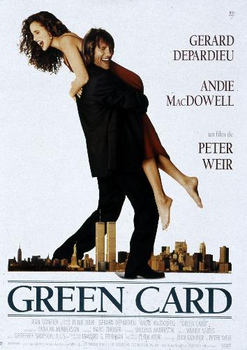 Comédie sympathique entre une andie mc dowell en américaine rigide et un gérard depardieu saltimbanque obligés de se réunir un week-end. Le film est doux et charmant, et depardieu "qui entend à nouveau de la musique dans sa tête" est parfait. Un classique de la comédie romantique .Deux acteurs habités ( mention spéciale à Gérard Depardieu qui est incroyable de naturel et qui donne de sa personne puisque son personnage raconte sa véritable enfance ), des seconds rôles croustillants , un scénar qui tient la route , de l humour , de l émotion et du romantisme , une bande son super et New York superbement filmée . Bref un super film , injustement méconnu , qu ' on prend plaisir à voir et à revoir . Très sympa ce film car il se dégage une tendresse particulière entre les deux. Des passages comiques également. Même si la trame est ultra-classique. C'est très bien joué et très optimiste. Green Card, de Peter Weir, est une petite comédie entre Gérard Depardieu et Andie MacDowell, centrée sur le mariage arrangé. Ayant déjà réussi d'autres thèmes, Weir s'attaque cette fois-ci à la comédie, et une fois de plus, il a tout compris. N'allant jamais dans le niais, c'est un humour spécial qui ne pourra plaire qu'aux gens ouverts et appréciant les comiques de situation. D'ailleurs, les rôles ont été faits pour eux, on se demande mal qui d'autre aurait pu jouer ces personnages. C'est donc un bon film de plus dans la filmo de Maître Weir. Je l'ai trouvé vraiment sympathique. J'avais pourtant une grande réticence à le voir, les comédies US ce n'est vraiment pas mon truc! Cependant il faut reconnaître que Andie MacDowell joue très bien, mais le film est surtout porté par Gérard Depardieu qui est exceptionnel dans ce rôle. A voir !