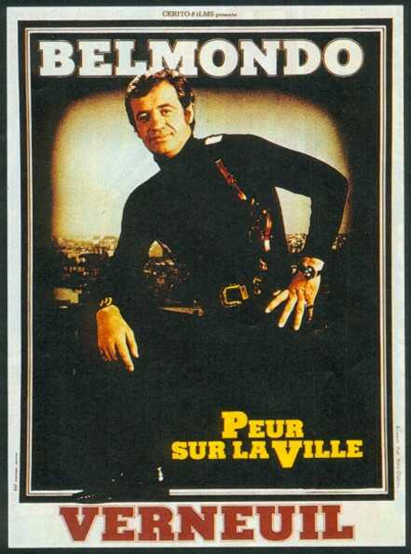 Bèbèl, dans son registre sérieux du flic cow-boy qui pratique la justice de manière expéditive ! Malheureusement outre son scénario copie conforme au premier volet de la série des inspecteur Harry (Minos ressemble, tel un frère jumeaux au Scorpio de "Dirty Harry") ce genre de films des années 70 vieillit très mal au fil du temps ! A noter par contre, la très belle BO du géniale Ennio Morricone... Quitte à faire un film au premier degré, au moins faudrait-il qu'il soit crédible. Un numéro sur mesure pour les performances physiques de Belmondo et même ça, on a du mal à y croire, des cascades dignes d'un James Bond avec l'humour en moins. Les moyens déployés n'auront pas suffi pas à rendre le film captivant, pas de surprise et pas mal d'ennui. Malgré son talent reconnu Denner ne ressemble vraiment pas à un flic, il s'est fourvoyé. Je ne connaissais pas trop Verneuil et je n'ai pas envie d'en savoir plus Un film culte qu'on aurait mieux fait d'oublier. Peur sur la ville c'est l'accumulation de toute les astuces de mises en scènes que le cinéma d'action nous a revendus des dizaines de fois. Aucune inventivité, aucune audace, aucun panache. C'est plat, le scénario est faible, la tension ne grimpe pas et Belmondo ne s'est pas décidé à briller, plutôt à jouer le cascadeur professionnel. Mal vieilli, trop seventies.