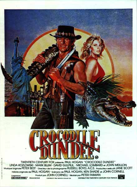 Qu'ils viennent du passé, du futur, d'une autre planète ou d'un milieu social différent, chaque couche de la population a droit à son film sur le "choc des cultures". Ici, c'est au tour de l'australien, Paul Hogan, de découvrir la civilisation. On a alors droit aux gags faciles, bien que parfois marrants du plouc devant des toilettes. Du plouc devant une télé. Du plouc devant un escalator... La liste est longue et pourrait s'étirer à l'infini. On finit par se lasser. Crocodile Dundee, est un nid de clichés, et de stéréotypes scénaristiques (j'ai du voir la dernière scène dans à peu près 20 films). C'est paresseux et incroyablement kitsch. Quant à l'histoire d'amour, elle ne faisait rêver que les collégiennes des années 80, aujourd'hui divorcées et inscrites sur meetic. Une comédie un peu fade, où il se passe pas grand chose. Les personnages sont sympathiques mais le scénario est hautement prévisible. Le héros est un peu trop une caricature grossière du mec de la campagne, un peu Tarzan et un peu le gros débile qui a jamais vu la civilisation. "Crocodile Dundee" a beau être culte, c'est une œuvre sans intérêt. Pas désagréable le moins du monde, mais molle. L'idée est pas mauvaise mais pas innovante non plus, et les acteurs sont pas excellents, et ce personnage principal, joué par Paul Hogan, cherche a en faire trop et frôle le ridicule selon les instants... Le scénario est malheureusement plat, ca tourne en rond en permanence, le film ne surprend pas du tout, il est banal et mal construit. Les dialogues sont mauvais et la mise en scène trop simpliste... Pas vraiment drôle, pas de rythme, pas d'histoire, ennui mortel. Quelques beaux paysages d'Australie au début. C'est vieillot, et mal fait... Ça ne fonctionne plus... mais cela a-t-il fonctionné un jour???