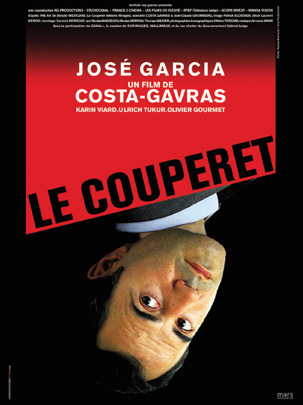Socle souvent indigeste de ses films, l'intrigue est un modèle de construction et de fluidité Costa-Gavras trouve en José Garcia un partenaire de choc, à mi-chemin entre l'Actor's studio et une légèreté comique assez bluffante. Bon boulot de groupe. A mi-chemin entre le "thriller social" et la farce à l'ironie mordante, Le Couperet sait ménager ses effets José Garcia compose un personnage à la fois inquiétant, un peu risible et extrêmement touchant. Il existe, à mon sens, cinq raisons majeures d'aller voir Le Couperet. L'intrigue implacable. L'interprétation neutre, blanche, inquiétante de José Garcia. La meilleure adaptation à ce jour d'un roman du grand Donald Westlake. La mise en scène précise et survoltée. Le culot du projet. Costa-Gavras mène bien son jeu. Et José Garcia incarne à la perfection ce serial cHômeur killer. Garcia arrive à rendre humaine cette folie, ces failles d'où surgissent doutes, peur glacée et tremblements. C'est à la fois un polar à suspense et un virulent pamphlet social que Costa-Gavras a tiré de l'étonnant roman de Donald Westlake On saluera la performance d'un José Garcia habité par son personnage, bien entouré par Karin Viard et Olivier Gourmet. Si l'on peut regretter une mise en scène parfois tapageuse et l'irruption d'un humour grand guignol pas toujours du meilleur effet, le film reste une belle réussite. José Garcia trouve sans doute son meilleur rôle depuis Extension du domaine de la lutte. Le comédien confirme sa maîtrise du registre dramatique. José Garcia porte le film avec l'abattage impressionnant qu'on lui connaît mais aussi la subtilité nécessaire pour composer un personnage à la fois sympathique et ignoble, froidement logique et chaudement maboul. Costa-Gavras ne fait pas dans la dentelle et pratique plutôt le surlignage épais que l'ellipse élégante.