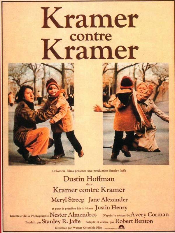 Oscar du meilleur acteur, Dustin Hoffman campe le père dèsemparè avec une tendresse sans faille tandis que Meryl Streep (Oscar du meilleur second rôle), bouleversante, trouve l'un de ses plus beaux rôles! Le talent de Streep, c'est qu'elle a tellement de sensibilité dans son regard qu'elle nous implique totalement dans la peau de son personnage! C'est émouvant, drôle, tendre et optimiste, bref c'est un film proche de nous et plein de charme et de vérité! Cerise sur le gâteau, "Kramer vs. Kramer" obtint 5 Oscars à Hollywood (dont celui du meilleur film et du meilleur rèalisateur) en révélant au grand public la bouille du jeune Justin Henry, bluffant de naturel! C'est un peu le catalyseur entre son père et sa mère, celui qui va entraîner le bouleversement de leurs vies, et en premier lieu celle de son père! Un incontournable du cinéma américain... Un film très émouvant et bourré de délicatesse. Robert Benton rend le plus petit geste de la vie quotidienne, poignant grâce à la relation qu'il établit entre le père et son fils. Les acteurs sont excellents, et notamment Dustin Hoffman, encore une fois impeccable et jamais dans le sur-jeu malgré le poids que porte son personnage sur les épaules. Un film qui ne vieillit pas et très émouvant de par l’histoire et l’interprétation des protagonistes. Quand je l’ai vu à 13 j’ai pleuré, quelques trente années plus tard aussi A voir au moins une fois. Une véritable référence, une interprétation sans faille de Dustin Hofman, pour un sujet qui n'a jamais été repris depuis lors au cinéma avec autant de justesse. Bref un vrai drame, juste, intemporel, frisant la perfection. Sortez vos mouchoirs. Film indémodable traitant d'un drame tout aussi indémodable : le divorce, la douleur des parents et de l'enfant dans lequel beaucoup se reconnaitront malheureusement. Tout y est, tout est dit, tout est interprété magistralement... Film profond dans les sentiments, qui sait émouvoir profondément sans verser dans le tire-larmes, sur un sujet devenu très banal ; le divorce. Interprétation magnifique de Dustin Hoffman . Cela rend au moins justice aux pères divorcés qui vivent un calvaire en l'absence de leurs enfants : oui les hommes peuvent aussi avoir une fibre, maternelle. La meilleure partie est celle où le père et son gamin se découvrent....