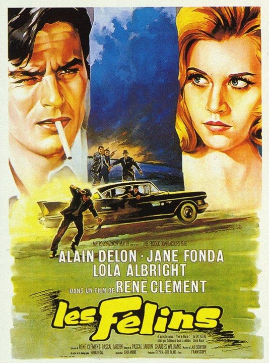 Jane Fonda est peut-être un peu trop séduisante pour son rôle : on se demande comment son partenaire parvient à lui résister. Le décor baroque de l'immense maison crée un climat de mystère et d'angoisse. La mise en scène est très moderne et bien des films plus récents paraissent ringards à côté de celui-ci. Seule la poursuite en voitures est datée. L'élément le plus faible est le scénario, pas toujours crédible et trop alambiqué, contrairement à celui de Plein soleil, plus sobre. L'un est adapté d'un roman de Charles Williams, l'autre d'un roman de Patricia Highsmith, la différence de finesse psychologique des caractères se ressent nettement. Ici, les personnages manquent tout de même un peu d'épaisseur. Mais on revoit ces Félins avec un grand plaisir. La maîtrise technique absolue de René Clément au service d'une intrigue vénéneuse mais artificielle. Un pur exercice de style. Le début laisse penser que l'on va avoir affaire à un film de gangster plan-plan mais rapidement le film change carrément d'aspect pour devenir un thriller assez intéressant. "Les Félins" est un étrange polar, à l'atmosphère intrigante et à la BO proche de l'expérimental inquiétante. Les péripéties de départ semble un peu tirées par les cheveux, mais contribuent finalement à cette curieuse ambiance. La mise en scène de Clément est plutôt inspirée, et côté acteurs, on a le droit à une superbe Jane Fonda et à une Delon parfait en jeune séducteur arrogant. A découvrir.