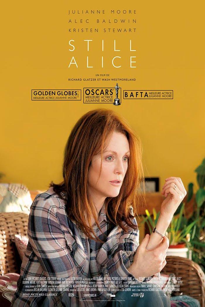 Si le long métrage frappe par son sujet extrêmement fort et par la performance incroyable de Julianne Moore, il n’en reste pas moins qu’il reste une certaine déception tant l’histoire de cette femme aurait pu s’élever dans de bien plus hautes sphères en ayant un traitement cinématographique marqué et une mise en scène vraiment assumée. Ce n’est pas vraiment le cas et Still Alice ne parvient ainsi pas à dépasser le statut de beau film. Film faible à cause d'une réalisation plate, uniforme et d'un scénario très réduit. C'est linéaire, sans surprise. Reste la prestation de Julianne Moore, exceptionnelle comme d'habitude. Elle donne de la nuance au personnage. Quelques répliques font mouche, comme la comparaison avec le cancer. Par bonheur, la fin de vie d'Alice nous est épargnée. Lauréate de l'oscar de la meilleur actrice, Julianne Moore livre dans Still Alice une performance assez remarquable. Sans en faire de trop, elle interprète avec sobriété une malade d'Alzheimer qui voit peu à peu ses facultés intellectuelles se détériorer. La trame du film et ses situations sont convenus, la mise en scène des plus académiques mais le film évite l'écueil du pathos tire-larme. Pas de grosses scènes lacrymales malgré une partition musicale qui cherche à faire pleurer dans les chaumières. Alors oui, le film ne transcende jamais son sujet et reste un mélo américain typique mais il se laisse regarder grâce à la magnifique prestation de Julianne Moore. A noter aussi la prestation subtile de Kristen Stewart dans le rôle de la fille apprentie comédienne qui ne cesse de nous surprendre depuis Sils Maria. Pas un grand film mais un film d'actrices, c'est mieux que rien mais ça sauve de loin Still Alice du naufrage! Un film qui montre à quel point la maladie d'Alzheimer est terrifiante. Perdre son identité, ne plus avoir de repères, ne plus se souvenir... C'est une horrible maladie. Je comprend que Julianne Moore est gagné l'oscar, elle joue avec perfection. Certaines scènes sont vraiment poignantes, et on voit la difficile progression de sa perte de mémoire. Les autres acteurs et actrices sont aussi bons mais c'est Julianne Moore qui porte le film sur ses épaules. Cependant, dans sa globalité le film manque de profondeur. S'il avait été plus creusé, il m'aurait sans doute plus bouleversé encore que cela.