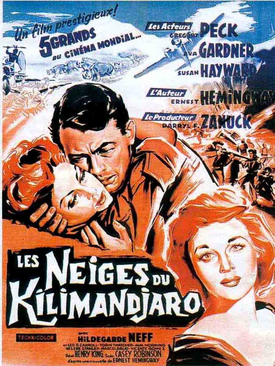 Et voilà un film qu'on ne ferait plus aujourd'hui. Film d'un autre temps donc, avec tout ce que cela comporte de visions très fin 40's (Afrique coloniale, Paris de carte postale d'après guerre...), "les neiges du Kilimandjaro" est avant tout un film d'aventure empreint d'une mélancolie profonde. En effet, un aventurier (largement inspiré de la figure emblématique du genre, Hemingway), blessé en Afrique au milieu de la savanne, se retrouve mourrant au milieu de nulle part seul avec sa femme avec qui il ne s'entend pas et leur suivants. Durant son agonie il se remémore avec nostalgie l'amour pour qu'il a eu pour une femme qu'il a perdu. L'ensemble ne tient pas toujours la route, aussi bien d'un point de vue scénaristique (l'histoire - trop longue - se perd dans des méandres de détails parfois sans intérets), que technique. Néanmoins, l'ensemble, tiré par le haut par un immense Gregory Peck subjugué par une vénéneuse Ava Gardner et une charmante Susan Hayward, se laisse regarder. Pas un chef d'oeuvre, juste un vieux film à voir, pour sa culture. Notons qu'il a inspiré la chanson homonyme "les neiges du Kilimandjaro" de Pascal Danel. Le film vaut surtout pour la présence magnétique de Gregory Peck et d'Ava Gardner, et rien que pour ça... Mais la mise en scène est vieillote, poussive, les clichés s'alignent continuellement sur les pays traversés par le héros. On n'y croit pas, et il vaut bien mieux relire la nouvelle d'Hemingway, superbe et tragique, et dont la fin est totalement différente.