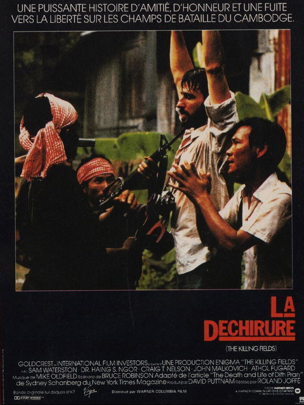 Ce film entouré d'acteurs jouant superbement leur rôle méritait les récompenses qu'on lui a admises. Le film est historiquement bien réalisé et bien filmé. On ne s'ennuie pas pendant tout le film qui dure pourtant 2h20 ! C'est un des meilleurs films qui conte l'histoire des khmers rouges. Dramatique, émouvant et éprouvant, ce film mérite d'être redécouvert. La Déchirure de Roland Joffé est un film poignant et émouvant qui vous prend à la gorge pendant tout le film. Un chef d’œuvre d’une grande qualité. Journaliste au « New-York Times », Sidney Schanberg est un des rares reporters à rester au Cambodge après la prise de la ville de Phnom Penh par les Khmers Rouge. Schanberg réussira à repartir aux Etats-Unis mais son interprète cambodgien, Dith Pran, est arrêter et sera forcé de travailler dans les camps de rééducation des Khmers Rouge. Schanberg va tout faire pour sortir son ami de l’enfer dans lequel il vit. La Déchirure, comme le titre l’indique, est un film déchirant, émouvant et bouleversant doté d’une magnifique histoire d’amitié. Un film culte,une claque.Un drame de guerre fort,dur et poignant de Roland Joffé.Une histoire humaine,dure et bouleversante,une mise en scène des plus belles,des acteurs excellents: Sam Waterston et Haing S. Ngor forme un duo remarquable et John Malkovich est très bon,l'ambiance est oppressante,la musique du grand Mike Oldfield est vraiment belle mais angoissante,certaines scènes sont fortes: la scène de la fosse aux cadavres fait vraiment froid dans le dos et la fin nous donne la larme à l'oeil. Excellent film que "La Déchirure", à la fois dur et sensible, avec de nombreuses images choquantes. La musique de Mike Oldfield et ses bizarreries sonores aide d'ailleurs à se plonger dans l'horreur de cette guerre sanglante et à se sentir révolté contre les injustices ayant eu cours. Un beau film à mi-chemin entre "Midnight Express" et "Le Pont de la rivière Kwaï". Film totalement culte ! Bouleversant, poignant... les qualificatifs manquent pour décrire les sentiments qu'on éprouve après avoir visionné ce film. A mettre entre toutes les mains pour ne jamais oublier ce qu'un régime devenu fou peut entreprendre pour éradiquer toute opposition afin de créer un nouveau monde de terreur et de contrôle. A l'heure ou s'ouvre le procès de 4 dirigeants de l'époque, ce film mérite d'être vu et revu (surtout quand on sait que la jeune génération cambodgienne, ne croit pas vraiment a ce qui s'est passé ou/et veut oublier)
