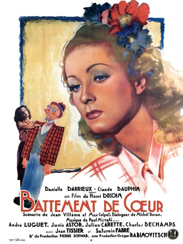 Charmante petite comédie sans trop de prétention. Ce n'est pas le genre de film que j'aime mais je dois avoué que j'ai souri à plusieurs répliques. Danielle Darrieux est dans son élément. Avec cette comédie romantique, le cinéaste Henri Decoin avait certainement l'ambition d'en réaliser une avec la même efficacité que les grands maîtres américains de ce genre à l'instar d'un Howard Hawks. La réponse à cette ambition n'est qu'à moitié réussie car outre que le film a un peu vieilli, Decoin n'arrive pas à imposer du rythme à l'ensemble. Reste, et ce n'est déjà pas mal, une interprétation de haut rang avec la fraîche et pétillante Danielle Darrieux, le toujours impeccable Claude Dauphin et une savoureuse galerie de seconds rôles avec une mention spéciale pour Saturnin Fabre dans le rôle d'un professeur de vol à la tire. Agréable mais peu mémorable. Un bon vieux film en noir et blanc, comme les anciens apprécient. Un dénouement énorme après un nombre de rebondissements impressionnant. Je le déconseille aux moins de 7 ans. En gros, l'oeuvre est maitrisé et atteint parfaitement son but qui est de faire une comédie américaine à la française. En effet le cinéaste Decoin, amoureux de la culture américaine, retranscrit dans "Battement de coeur" le rythme d'une comédie hollywoodienne des années 30 avec brio. Cependant, si la comédie est réussit et parfois alléchante, elle n'est pas la plus mémorable du cinéma français. En effet, comme la plupart des films de Decoin, cette oeuvre, sans style visuel réellement personnel tire essentiellement sa force de sa thématique abordé avec justesse, se concentrant seulement sur la cohésion des plans et non pas sur l'importance de chacun. En conclusion, "Battement de coeur" (France, 1939) est une comédie remarquable dans la filmographie d'Henri Decoin mais pas inoubliable dans le paysage du cinéma français pré-70.