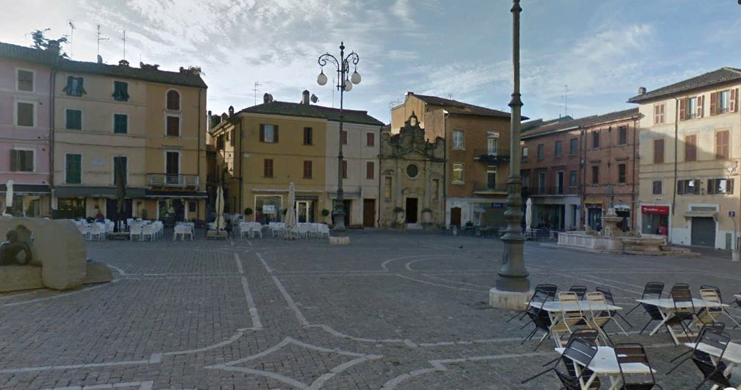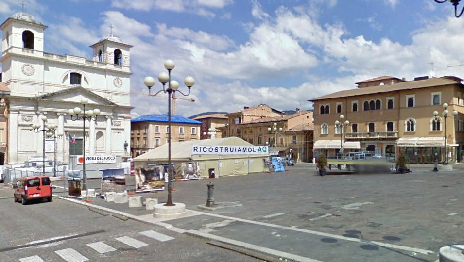 L'Aquila (Piazza Duomo) B = Savona (Piazza Aldo Moro) C = Ancône (Piazza Ugo Bassi)