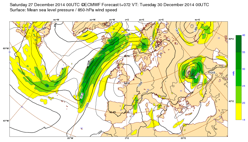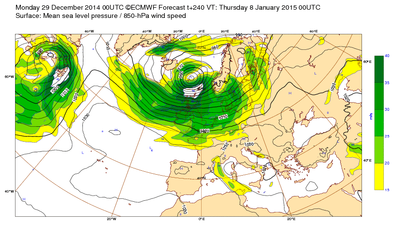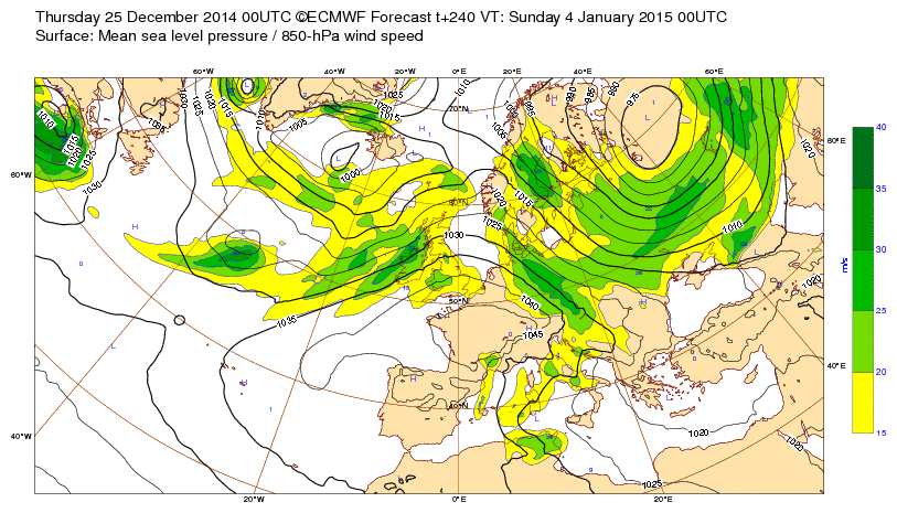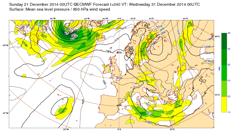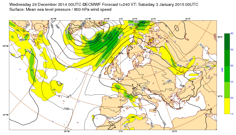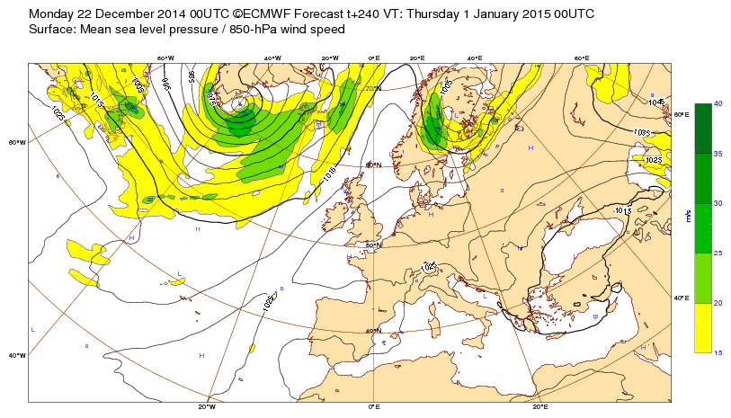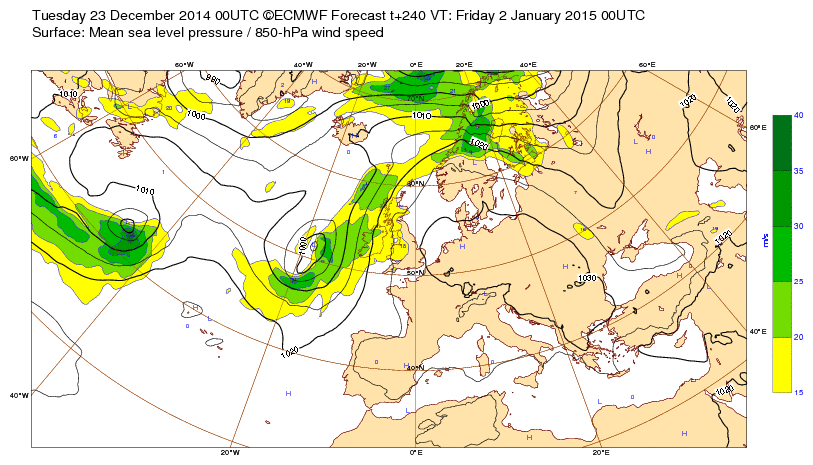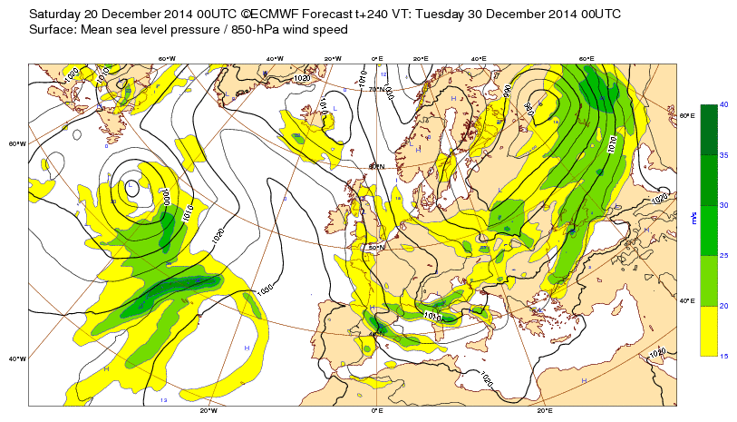 Le Centre Européen de Météo-Climato ECMWF édite des cartes de prévision remarquables et globalement d'une très bonne fiabilité, même s'il arrive de temps en temps, inévitablement, que l'atmosphère semble prendre quelques libertés avec les données initiales. Voyons les résultats obtenus à diverses dates, en faisant se suivre pour chaque jour sélectionné dans les archives, la prévision la plus haute à 10j (J-10) , l'échéance moyenne à 3j (j-3) et la carte d'observation (j) . ( J-10 / J-3 / J )