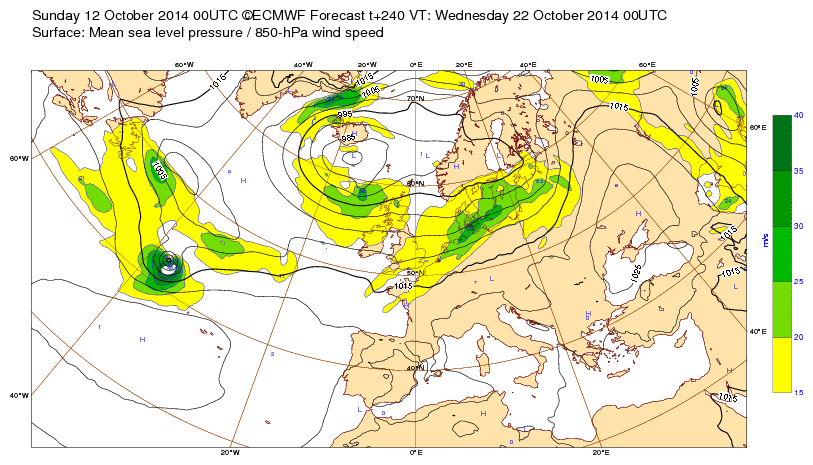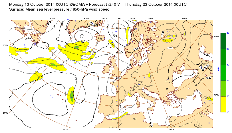 Le Centre Européen de Météo-Climato ECMWF édite des cartes de prévision remarquables et globalement d'une très bonne fiabilité, même s'il arrive de temps en temps, inévitablement, que l'atmosphère semble prendre quelques libertés avec les données initiales. Voyons les résultats obtenus à diverses dates, en faisant se suivre pour chaque jour sélectionné dans les archives, la prévision la plus haute à 10j (J-10) , l'échéance moyenne à 3j (j-3) et la carte d'observation (j) . ( J-10 / J-3 / J )