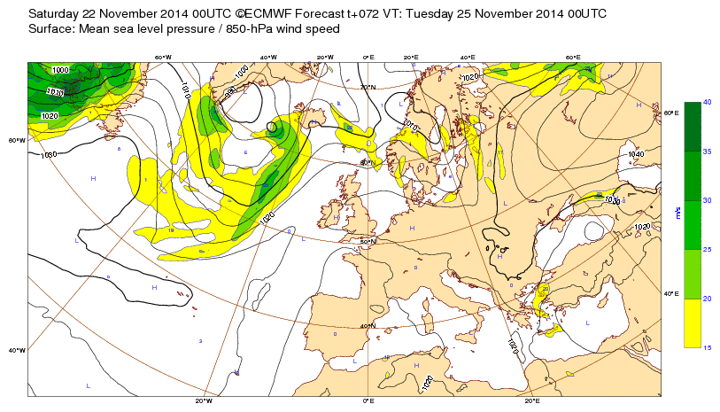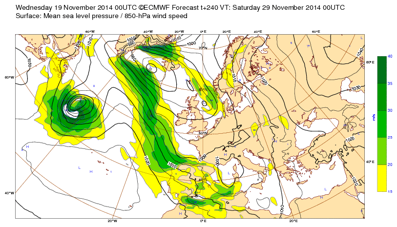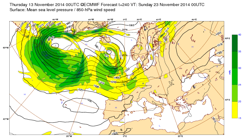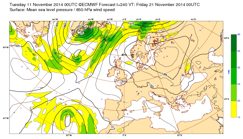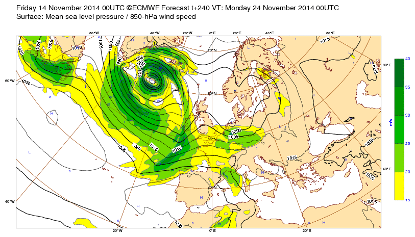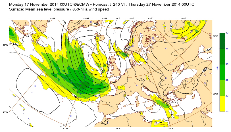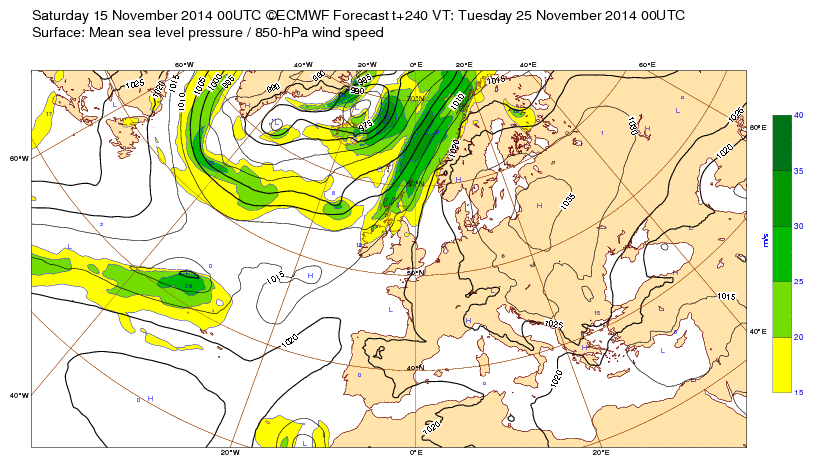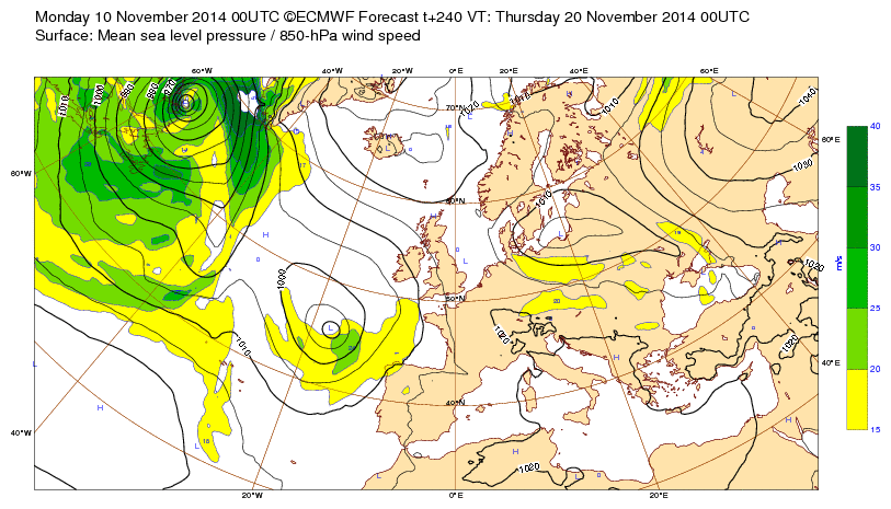 Le Centre Européen de Météo-Climato ECMWF édite des cartes de prévision remarquables et globalement d'une très bonne fiabilité, même s'il arrive de temps en temps, inévitablement, que l'atmosphère semble prendre quelques libertés avec les données initiales. Voyons les résultats obtenus à diverses dates, en faisant se suivre pour chaque jour sélectionné dans les archives, la prévision la plus haute à 10j (J-10) , l'échéance moyenne à 3j (j-3) et la carte d'observation (j) . ( J-10 / J-3 / J )