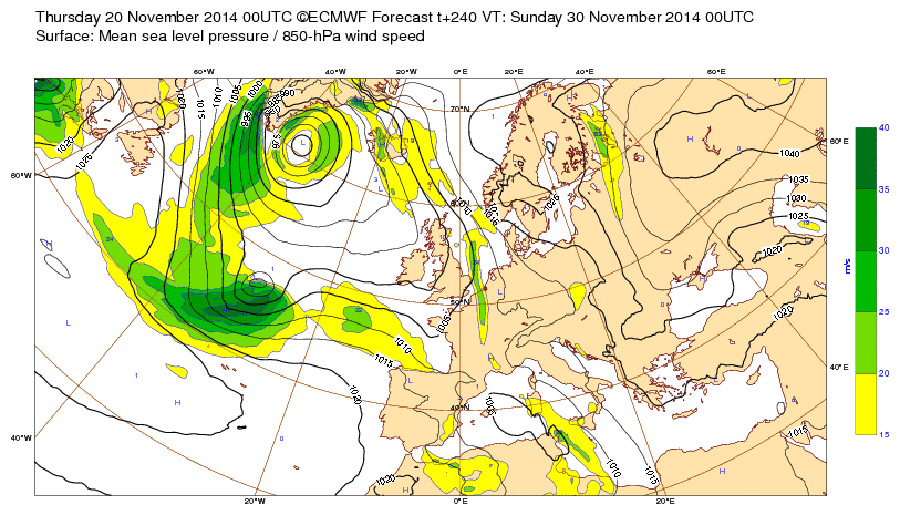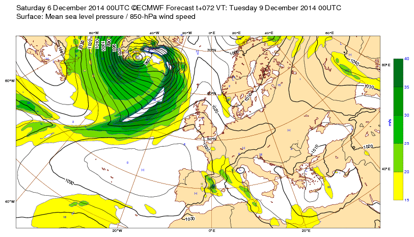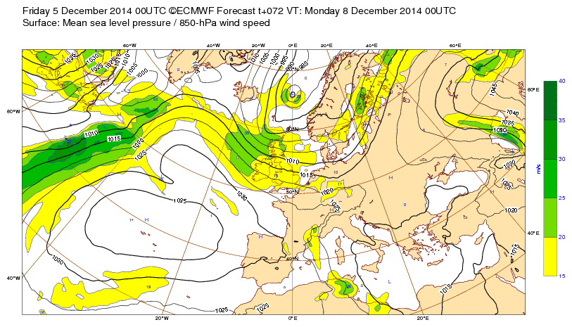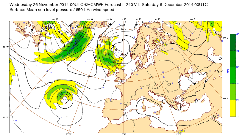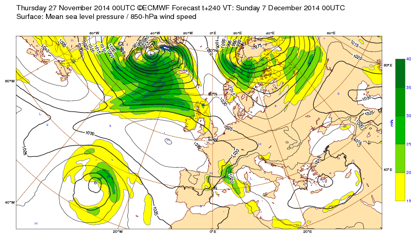 Le Centre Européen de Météo-Climato ECMWF édite des cartes de prévision remarquables et globalement d'une très bonne fiabilité, même s'il arrive de temps en temps, inévitablement, que l'atmosphère semble prendre quelques libertés avec les données initiales. Voyons les résultats obtenus à diverses dates, en faisant se suivre pour chaque jour sélectionné dans les archives, la prévision la plus haute à 10j (J-10) , l'échéance moyenne à 3j (j-3) et la carte d'observation (j) . ( J-10 / J-3 / J )