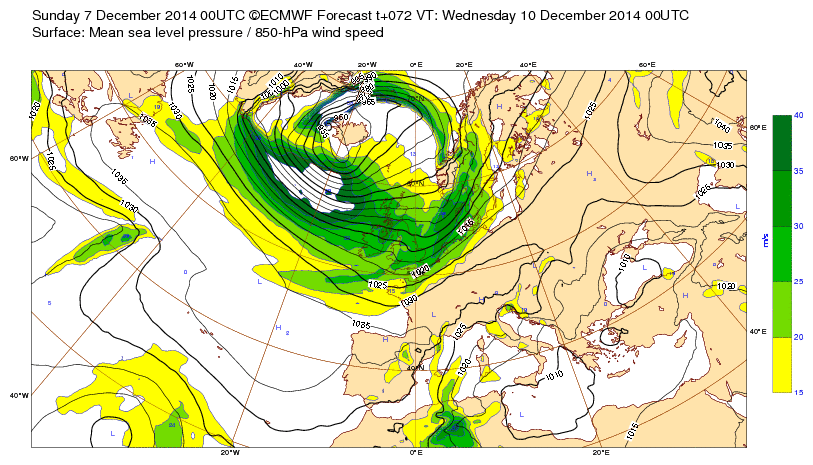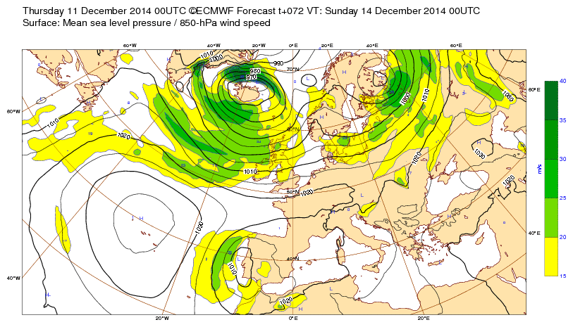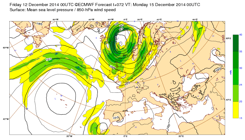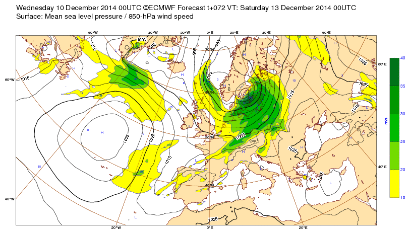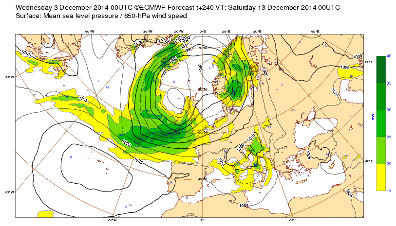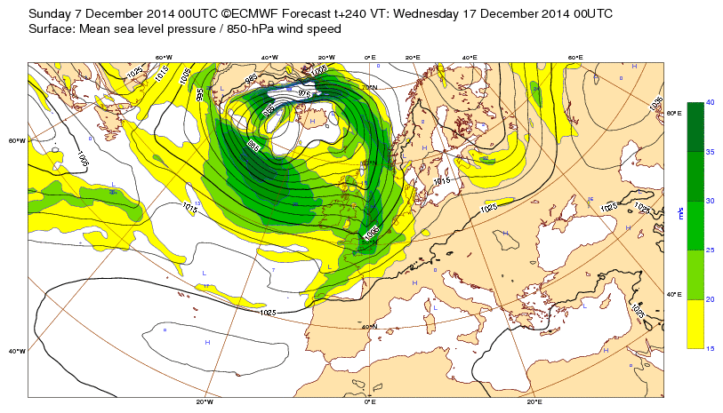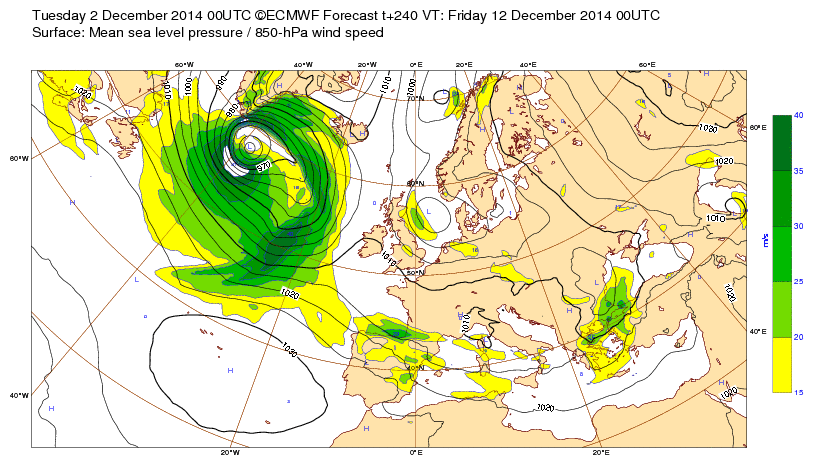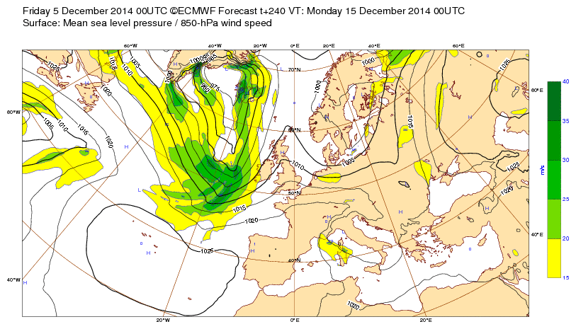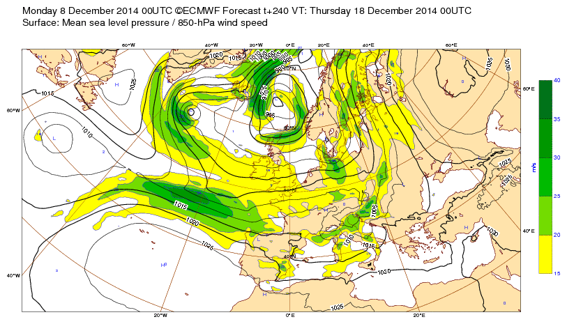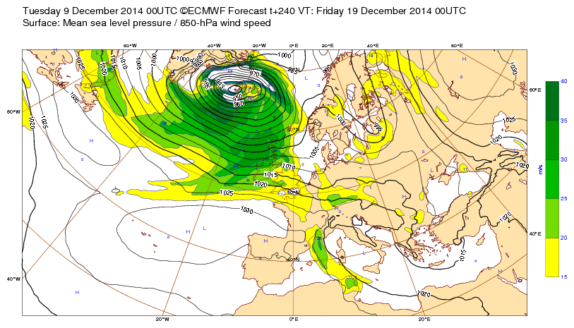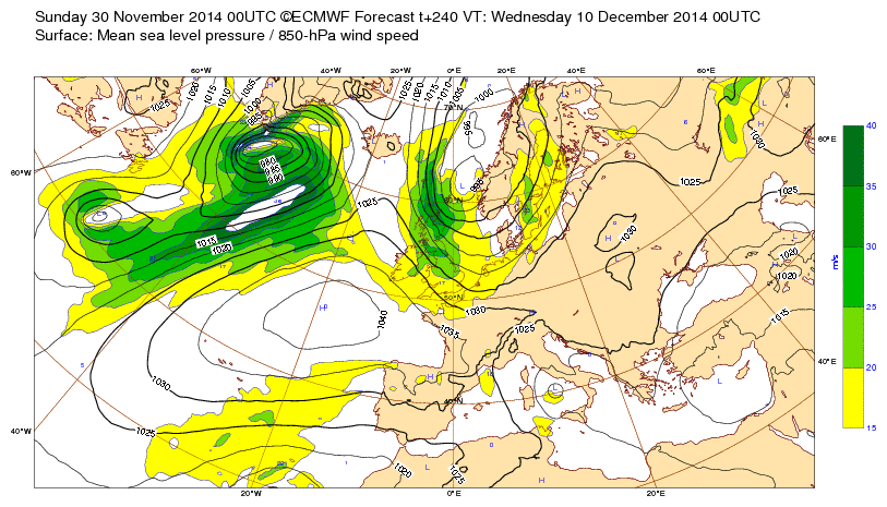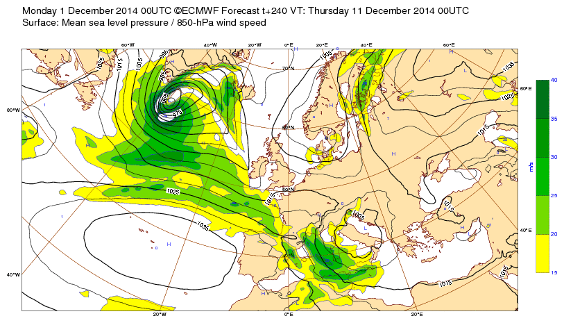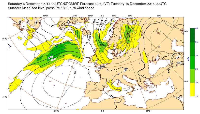Le Centre Européen de Météo-Climato ECMWF édite des cartes de prévision remarquables et globalement d'une très bonne fiabilité, même s'il arrive de temps en temps, inévitablement, que l'atmosphère semble prendre quelques libertés avec les données initiales. Voyons les résultats obtenus à diverses dates, en faisant se suivre pour chaque jour sélectionné dans les archives, la prévision la plus haute à 10j (J-10) , l'échéance moyenne à 3j (j-3) et la carte d'observation (j) . ( J-10 / J-3 / J )