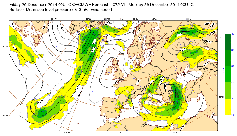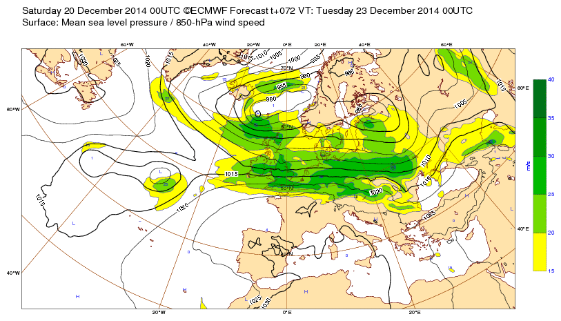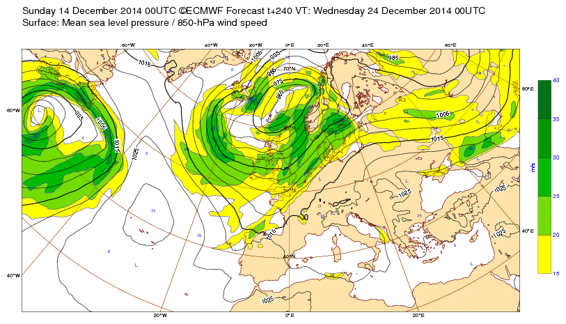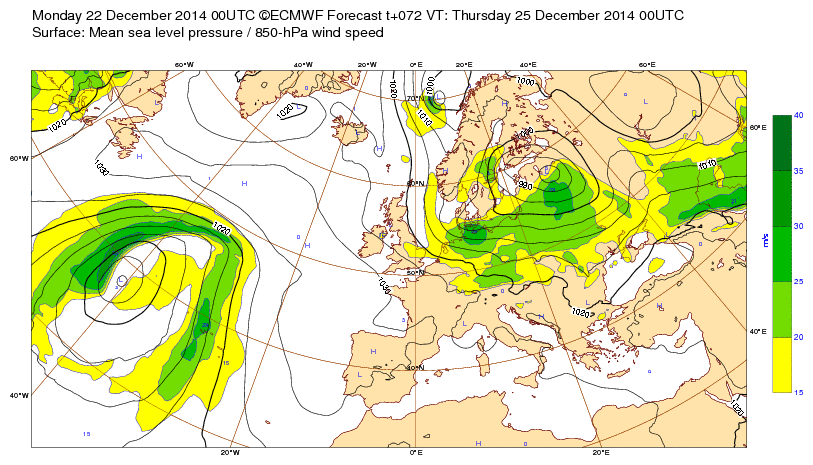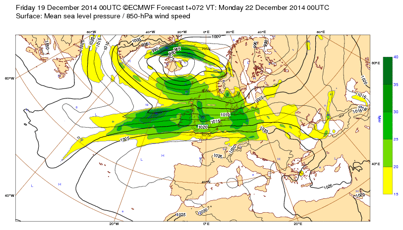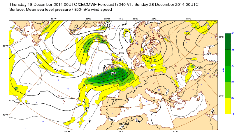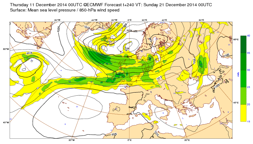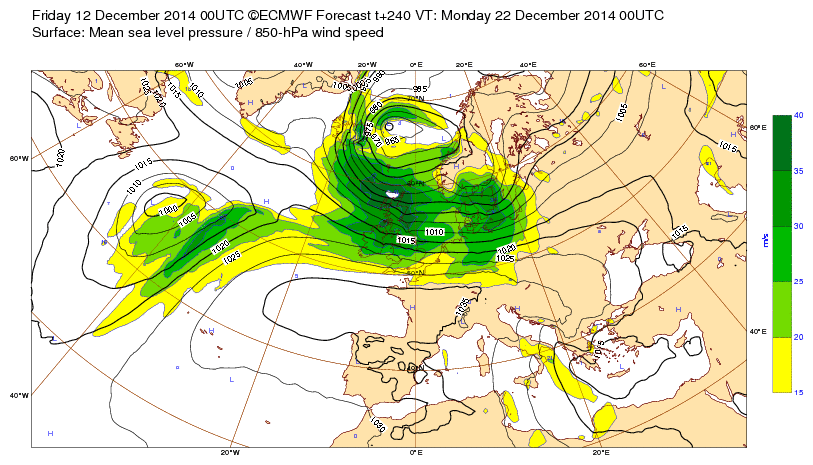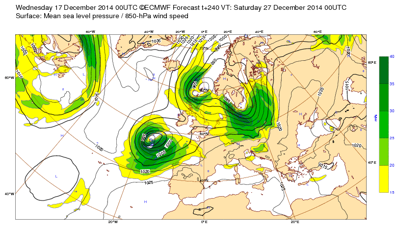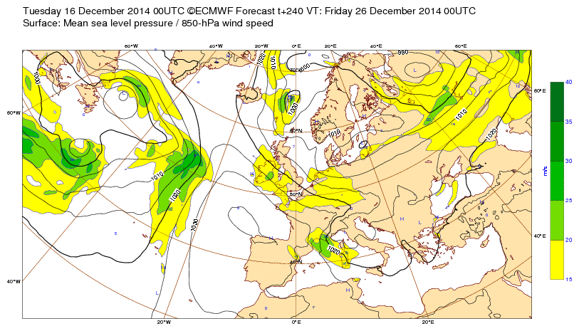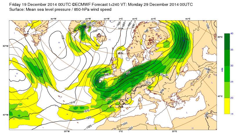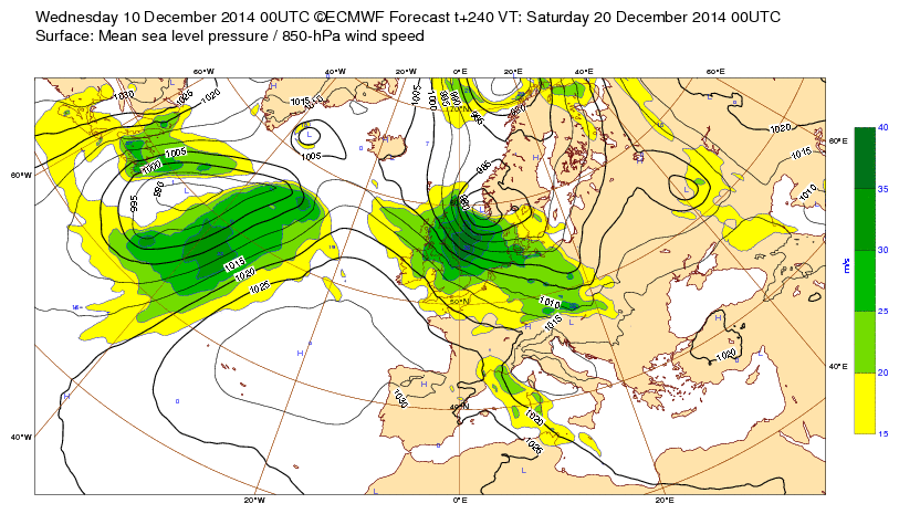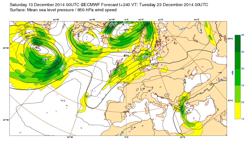 Le Centre Européen de Météo-Climato ECMWF édite des cartes de prévision remarquables et globalement d'une très bonne fiabilité, même s'il arrive de temps en temps, inévitablement, que l'atmosphère semble prendre quelques libertés avec les données initiales. Voyons les résultats obtenus à diverses dates, en faisant se suivre pour chaque jour sélectionné dans les archives, la prévision la plus haute à 10j (J-10) , l'échéance moyenne à 3j (j-3) et la carte d'observation (j) . ( J-10 / J-3 / J )