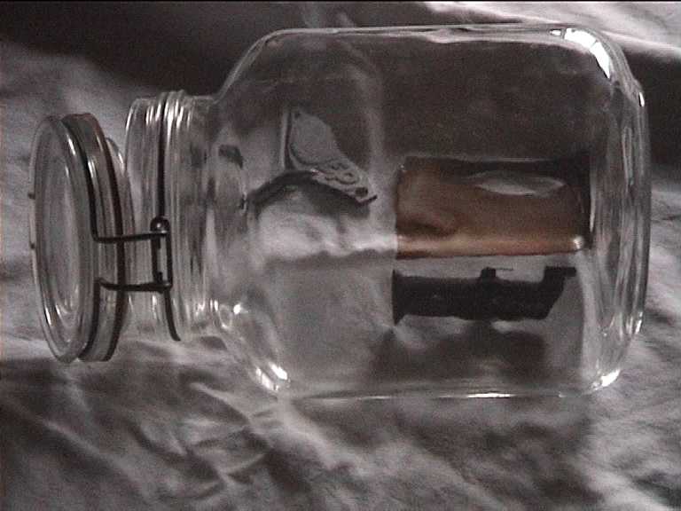 Faraon à l'intérieur de ce récipient, du reste souvent voué aux cornichons... n.d.e : attention peut-être à ne pas prendre un ton trop ironique (ou encore moins sacarstique) avec ce petit mannequin dans lequel ont été mis , je crois, de la part de l' auteur, grand espoir et signification...même si un ton détendu, voire un peu badin, sied parfaitement à ce curieux élément dont l'origine bidulaire ne fait aucun doute...Mais continuez vos légendes qui sont acceptables... |