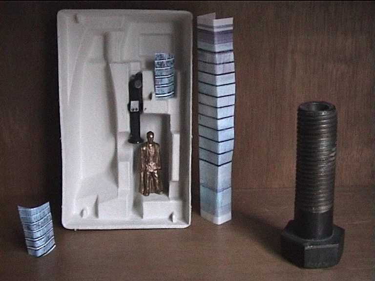 | ...Pour montrer jusqu'où l'esprit de minimalisme peut porter Maldor dans son Art, voici ,selon lui, une représentation tout à fait valable de la demeure du Roi Soleil...(Ici, pense-t-on, peut-être l'ultime avatar d'un des deux escaliers dit des "Cent Marches", après coupage, pliage, roulage, froissage, étirage, une certaine remise en forme, et une vague présentation en statue type Samothrace (dûe en réalité tout à fait au hasard , à un courant d'air...) |