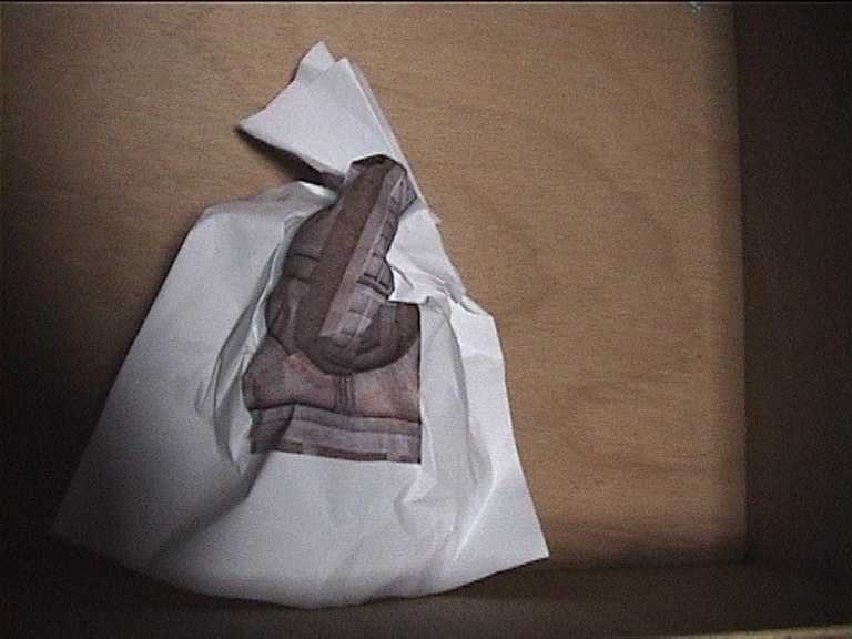 | ...Et voilà ce qui reste du Château de Versailles après un " froissage-pliage" par Maldor!...Mais c'est peut-être la façon dont le petit mannequin Faraon "voit" le célèbre palais... |