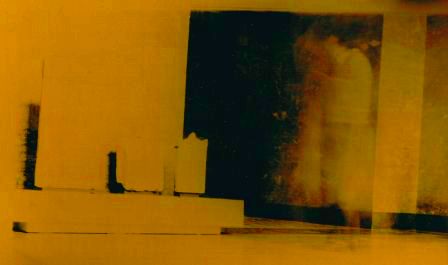 | ... Image un peu "futuro-abstraite" (en réalité d'une série d'autoportraits), ici encore dit "Autoportrait au vent" ...Effectivement, avec un peu d'attention, et en insistant beaucoup, on arrive à apercevoir, au milieu, un peu à gauche, dans un carré plus clair, deux yeux, un nez et une bouche...deux yeux torves, un nez camus et une bouche raide et droite, pincée...Tout son contraire quoi ! Mais était-il bien là ? Et même, s'agit-il vraiment de quelqu'un ? (N'est-ce pas plutôt l'effet d'une mouvance sous l'effet du vent sur on ne sait quoi ?)... Mais c'est incontestablement "futuro-abstrait" et c'est le principal ! |
