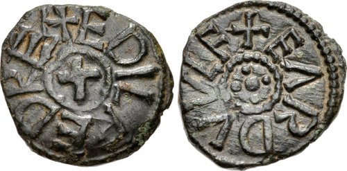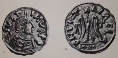 En Angleterre, les rois vikings norvégiens frappent monnaie dont un penny dit "au corbeau" (n°30g) En Francie, début du monnayage des ducs de Normandie dont les deniers sont de type carolingien avec une déformation du temple caractéristique (n°30d)