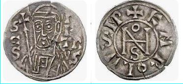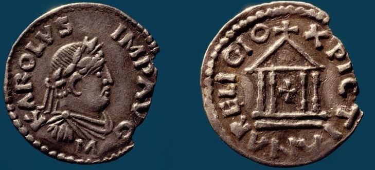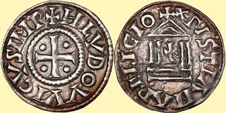 830 Le roi carolingien Louis le Pieux réintroduit le denier Croix / Temple, type initié par Charlemagne (sans les points) et qui sera perpétué (inchangé) encore longtemps. (n°24) 840 Le roi carolingien Charles le Chauve réintroduit (au rev.) le monogramme de Charlemagne. (n°19) c.845 La Principauté lombarde de Bénévent met fin aux monnaies d'or (solidi) pour des deniers "Temple / Croix". 855 Venise adopte le revers au temple et ne fait plus figurer le nom de l'empereur au droit (cf. n°22)
