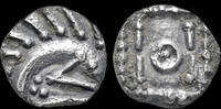 (Angleterre) Sceat (Denier) (ar) (11mm - 0.9g) Porc-épic / Etendard (n°11) Tout comme celui de l'or qui a fini par disparaître (n°9), le taux de fin de l'argent baisse à son tour. |