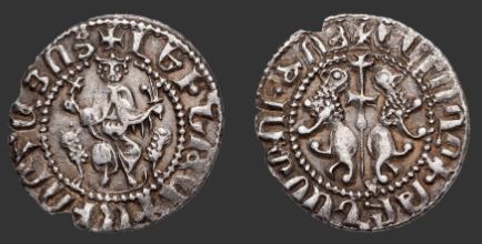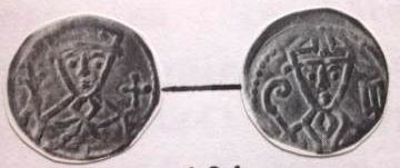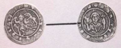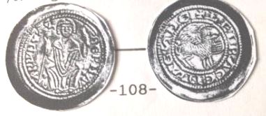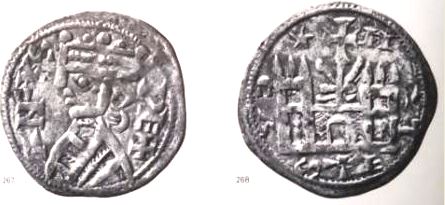 1204-1210 Penny (ar) (18mm -1.4g) (n°57) IRLANDE Les pennys se distinguent des types anglais par un triangle sur les deux faces.(n°57) Par la suite similitude avec les pièces anglaises.(Ces types au triangle furent imités en Allemagne). c.1210 BULGARIE Début d'un monnayage d'abord de pure imitation du cuivre byzantin (trachéa) puis les noms des rois y figurent. Il y eut aussi des gros d'argent sur le modèle vénitien.(n°54) |