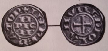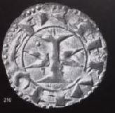 1192/1194/1197 Gros (ar) (20mm-2g) 1192 ITALIE A Milan, devant la dégénérescence des deniers (bas billon <200/1000 de fin) l'empereur d'Allemagne (également roi d'Italie) crée un multiple, le "gros" d'environ 2g de bon argent valant 20 deniers ordinaires. (n°52) 1194 SICILE Suite au mariage de l'emper. HenriVI avec la fille du roi normand RogerII création d'un denier de billon de type occidental. 1197 SICILE Dans le royaume normand (sous FrédéricII de Hohenstaufen) le tari d'or et ses multiples (de 0.5g à 10g)(souvent pesés) servait de base à l'impôt.(n°37d) |