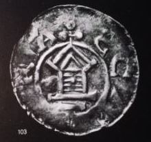 ALLEMAGNE Pfennig (Denier) (revers) (19 mm - 1.7g) Le temple (église) subit une transformation qui lui donne un aspect de boîte qualifiée de "Holzkirche" (église en bois). Ce type sera continué durant tout le 11è s. (n°35)