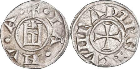 FRANCE Denier (ar) (c.18mm -c.1.5g) (n°41g,d) Le monnayage royal gagne un peu en importance et le roi Louis VII (1137-1180) innove avec "FRANCORUM" au droit de ses deniers à Paris et à Bourges où il crée la "croix bourgeoise" (n°41g). Mais le monnayage féodal reste de circulation plus étendue et souvent de meilleur aloi comme les "melgoriens" (comté de Melgueil) dans le Sud (n°41d)Toutefois seuls les Ducs de Bourgogne et les archevêques de Reims frappent à leur nom, les autres ne mentionnant plus que l'atelier et leur titre.