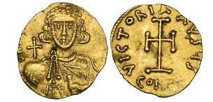 Trémisse (or) (17mm - 1.5g) Buste couronné de f. tenant le globe / Croix potencée (n°62)