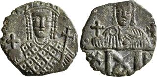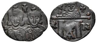 Constantin VI Follis (cu) (18mm- 2.5g) Buste d'Irène de face en loros tenant le globe et le sceptre cruciforme / Buste de face de l'empereur en chlamyde tenant le globe. (n°78)