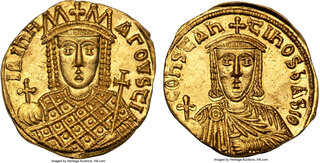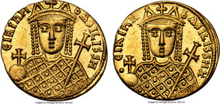 797-802 Irène Solidus (or) (21mm - 4.4g) Buste d'Irène de face en loros tenant le globe et le sceptre cruciforme / Idem (n°79)