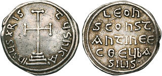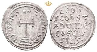 717-741 Leo III l'Isaurien Miliaresion (ar) (19mm-1.7g) Croix potencée sur trois degrés / Inscription cinq lignes (n°67) Création d'une monnaie d'argent courante, épigraphe (sans figures) (en place de la silique qui n'était presque plus frappée) et qui restera la pièce standard du monnayage d'argent pendant plus de trois siècles (1092).