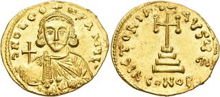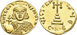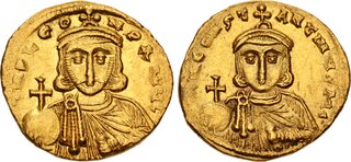 741-775 Constantin V Solidus (or) (21mm - 4.4g) Bustes de Constantin V et de Leo IV vêtus de la chlamyde / Buste de Leo III vêtu du loros, tenant la croix potencée (n°69)