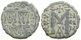 Constantin V Follis (cu) (19mm- 2.3g) Bustes de l'emper. et de Leo IV de face/ M (n°71) Si les pièces d'or sont d'un poids très stables dans l'espace et dans le temps, celui du follis peut varier beaucoup d'un atelier à un autre.
