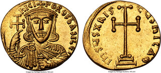 Nicéphore I Solidus (or) (21mm - 4.4g) Buste couronné de face, tenant une croix potencée / Croix potencée sur trois degrés (n°82)