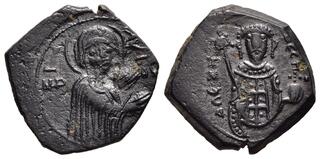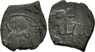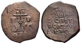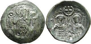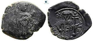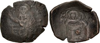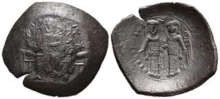 Tétartéron (cu) (20mm-3.8g) Buste de la Vierge de f. / L'emper. debout de f. tenant le globe crucifère et le labarum (n°181)