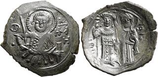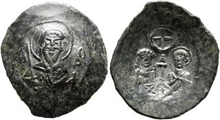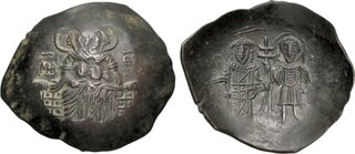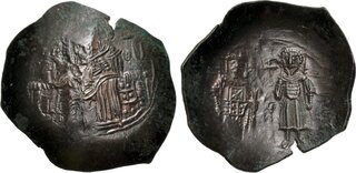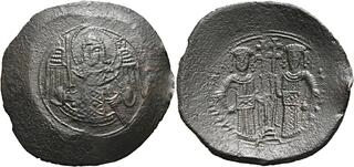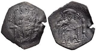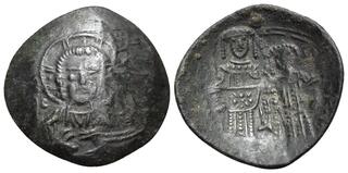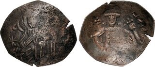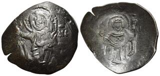 Trachy de billon (ar+cu) (24mm-2.3g) (scyphate) Christ trônant / Empereur trônant (n°186)