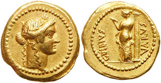 44-28av Auréus (or) (20mm - 8.2g) Buste de Flora / Vestale (voilée) (39av) (n°147)