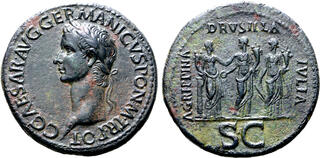Caligula Sesterce (br)(orich.) (36mm - 25g) Buste lauré à g / Ses 3 soeurs Agrippina (en Securitas), Drusilia (en Concordia) et Julia (en Fortuna) (n°200)