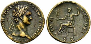 Domitien Sesterce (br)(orich.) (33mm - 28g) Buste lauré à d. / Jupiter tenant le sceptre et une Victoire. (n°226)