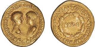 37-41 Caligula Auréus (or) (22mm - 7.8g) Buste de l'empereur / Buste d'Agrippine (sa mère) (n°198)